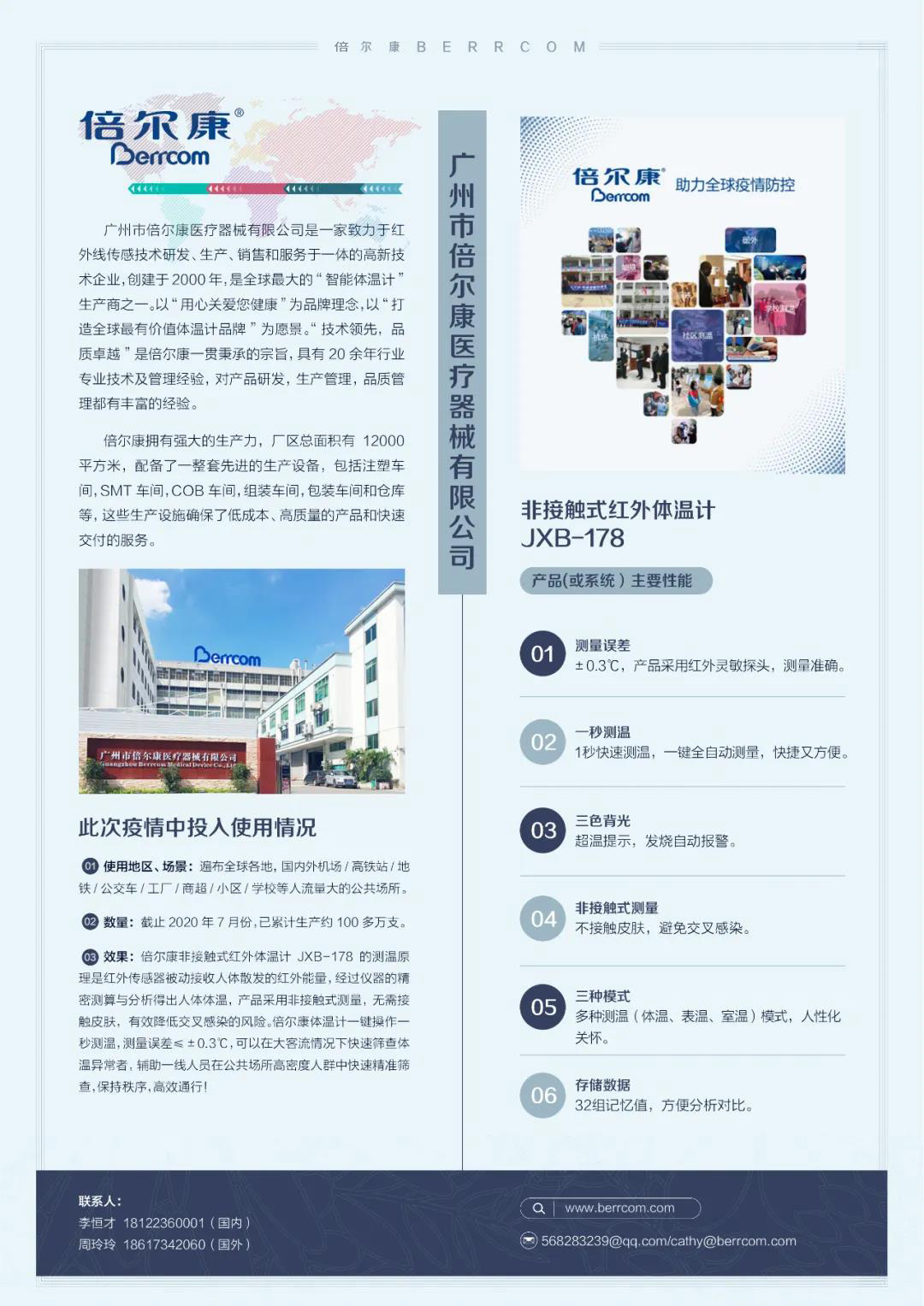 倍爾康及經(jīng)典產(chǎn)品JXB-178就在《抗疫儀器儀表及系統(tǒng)匯編-紅外測溫產(chǎn)品專輯》中。
