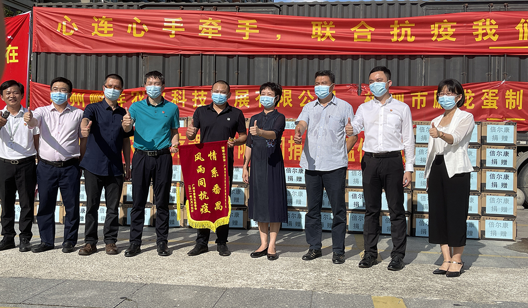 番禺區各領導與倍爾康總經理郭智超捐贈儀式上合照
