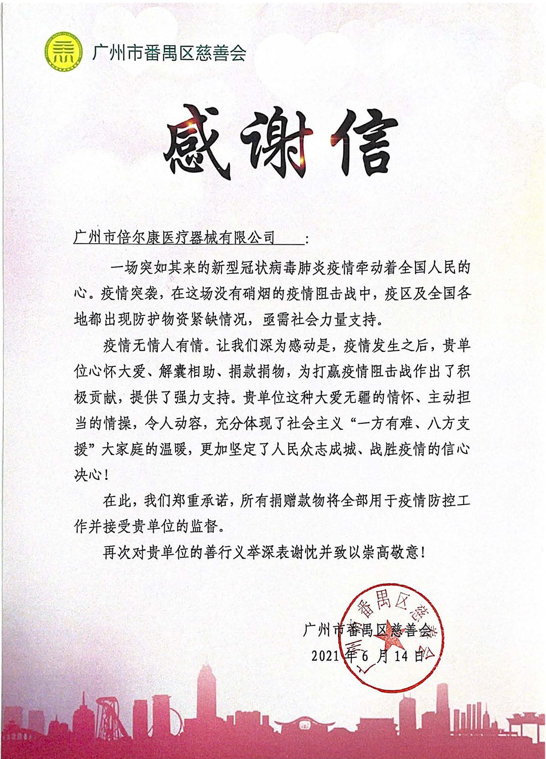 番禺區慈善會致謝倍爾康