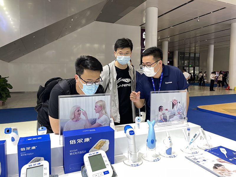 展會期間,不少客商在倍爾康展位駐足停留,與工作人員詳細了解體溫計以及血壓計等品牌新品、感受家庭醫療器械帶來的新體驗。