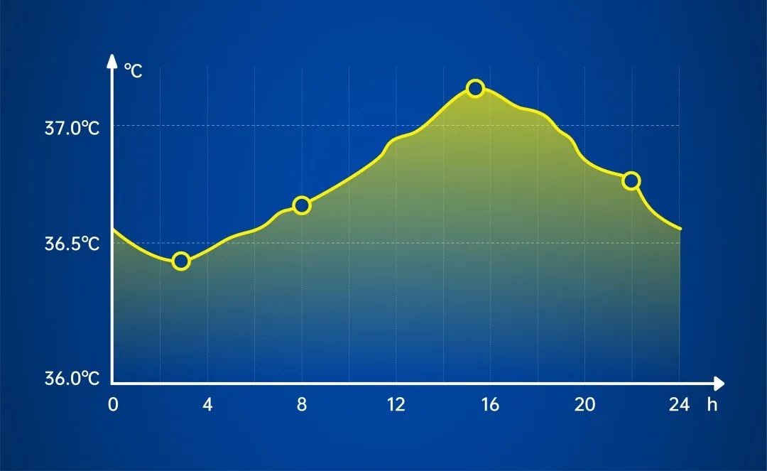 在24小時內,人體體溫也會略有變化。人體在在睡眠中,因為沒有活動,新陳代謝變慢,血液流動緩慢,體溫就會跟著下降,一般在清晨2~6時較低。而到了下午,人體吸收熱量,活動量增加,體溫就升高了,在下午2~8時較高,但24小時內的體溫波動一般不超過1℃。