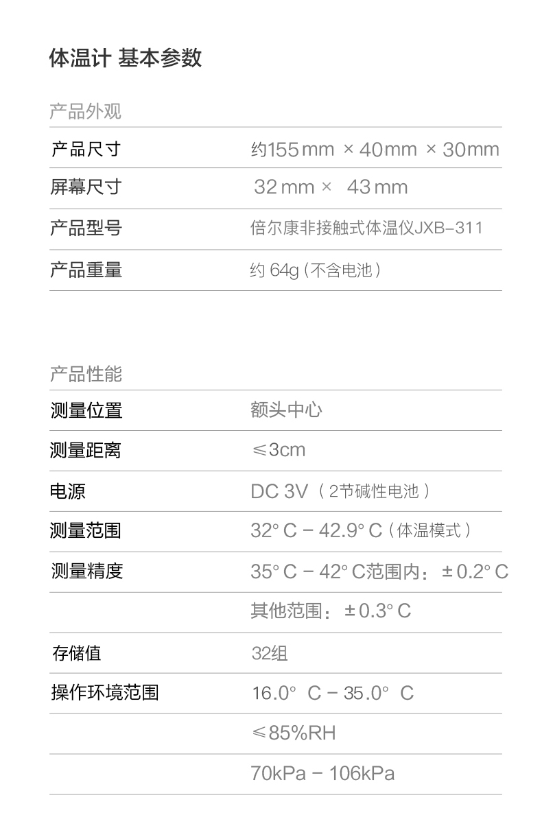 非接觸式紅外體溫儀 JXB-311
